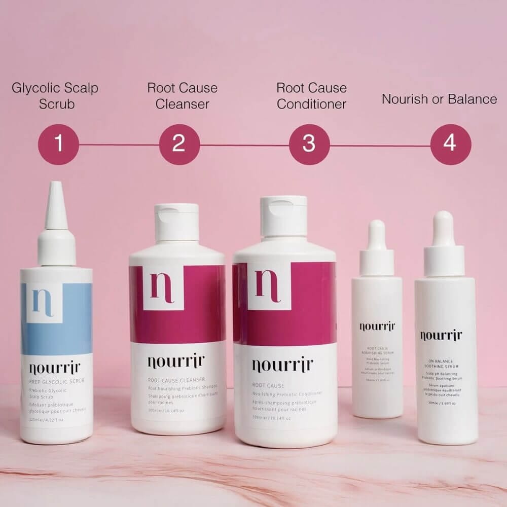 Prebiotics:ย Feed the good bacteria already present on the scalp, helping to maintain microbiome balance. A disrupted microbiome can lead to irritation, redness and dandruff, which in turn can contribute to hair thinning or hair loss.ย